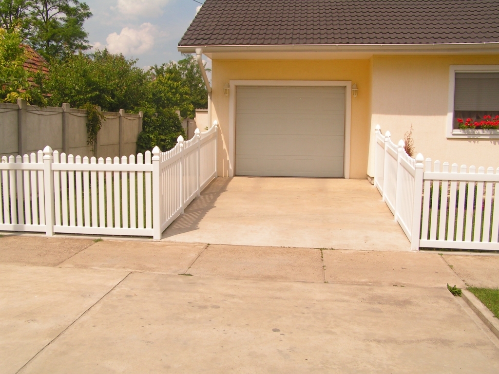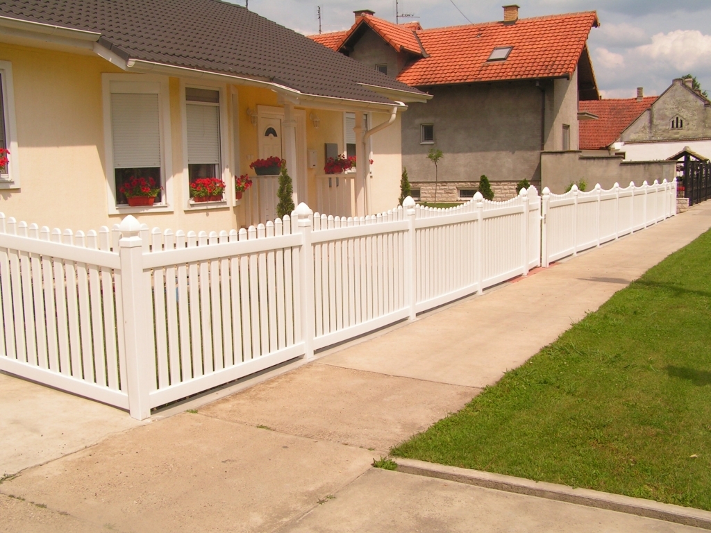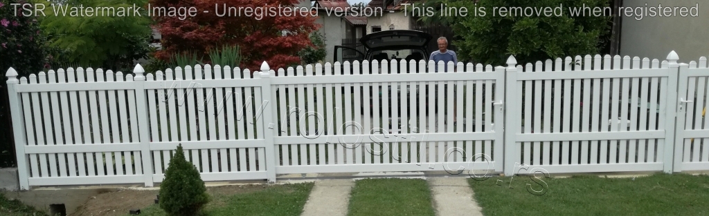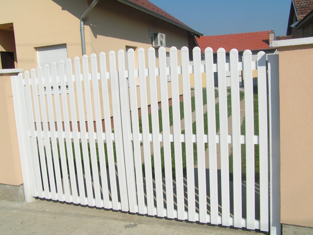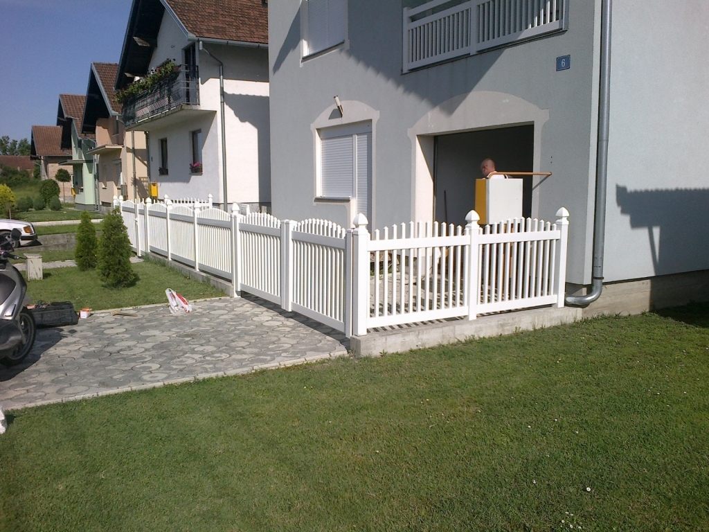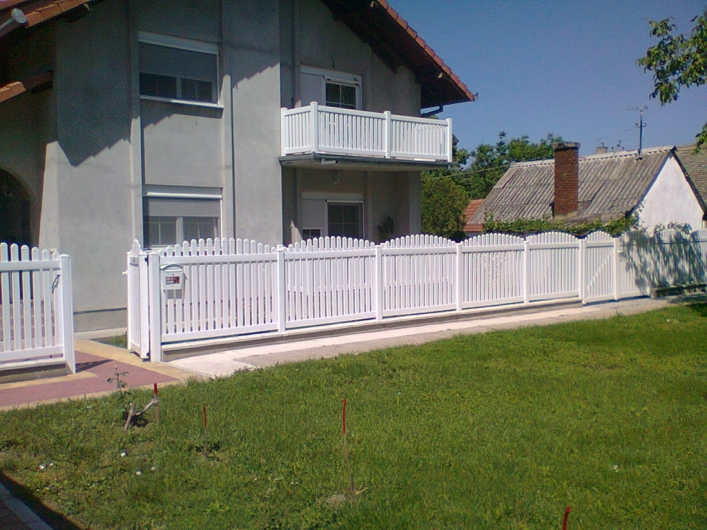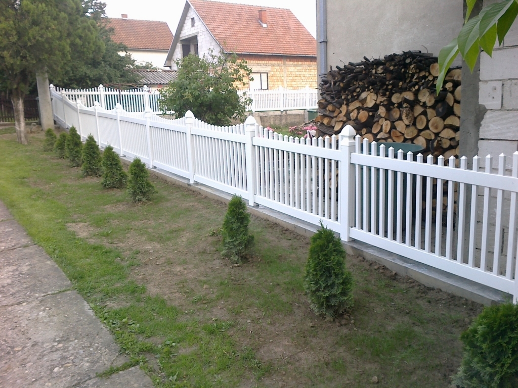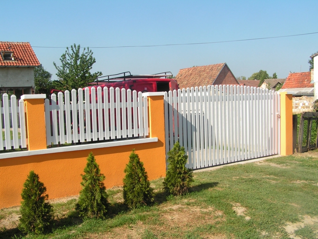 Ravna plastična ograda do ulice, sa malom i velikom kapijom.