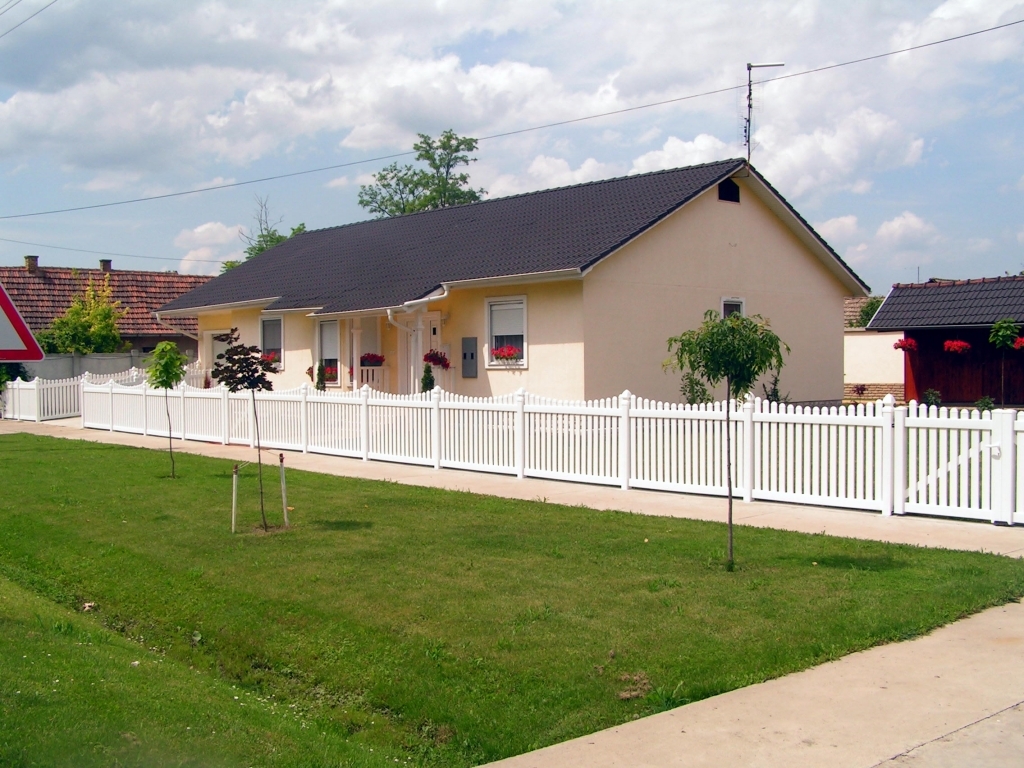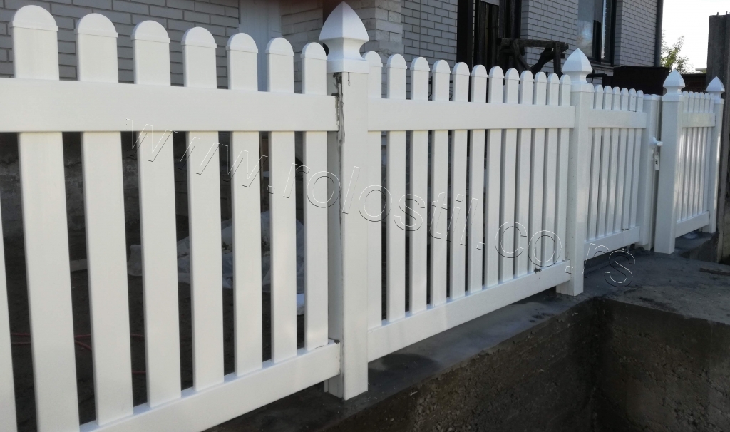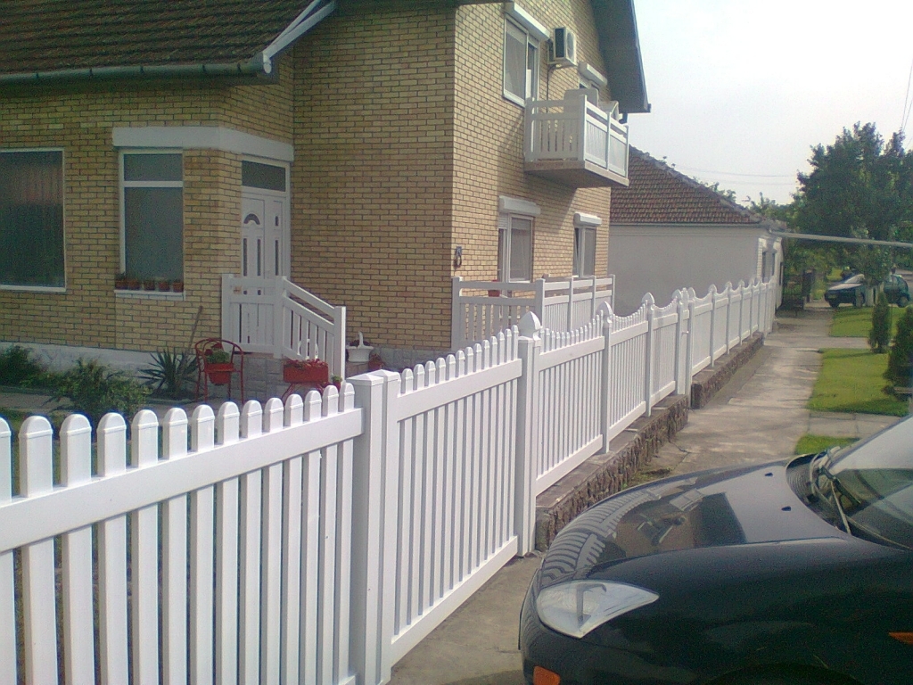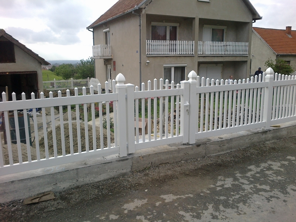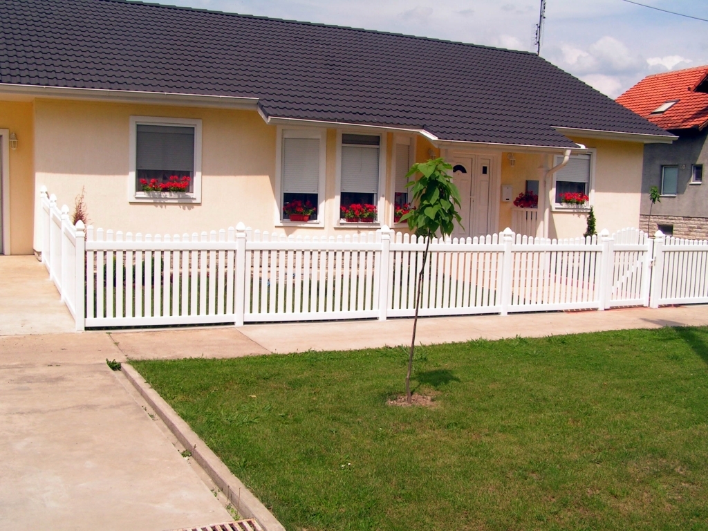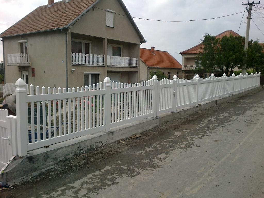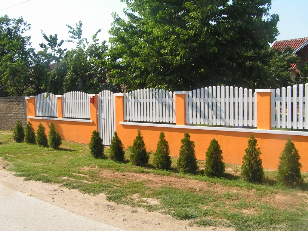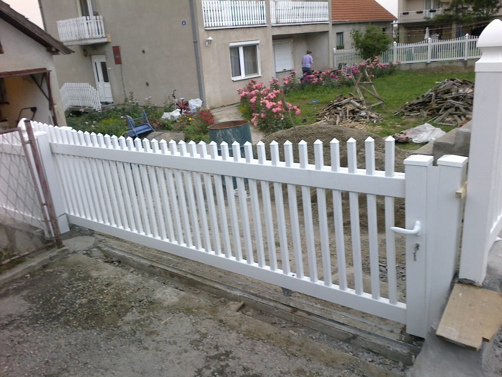 Ravna plastična ograda do ulice, sa malom i velikom kapijom.