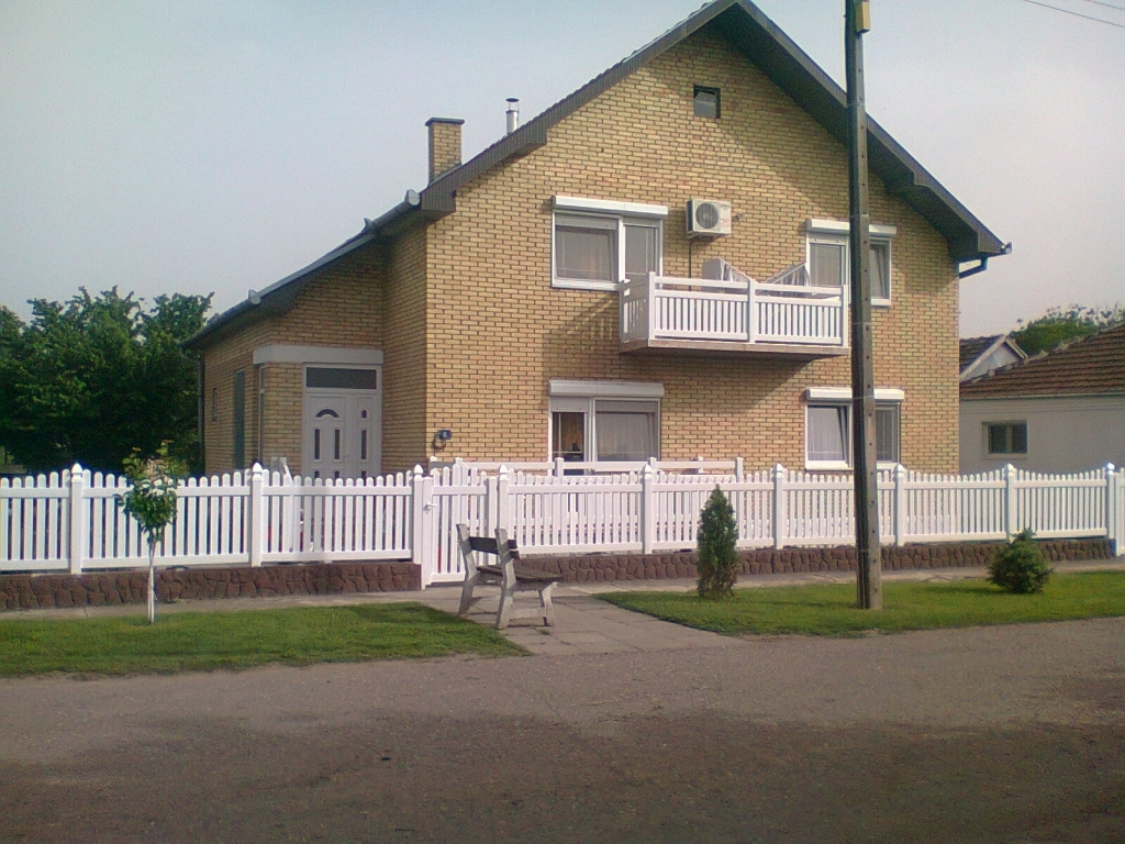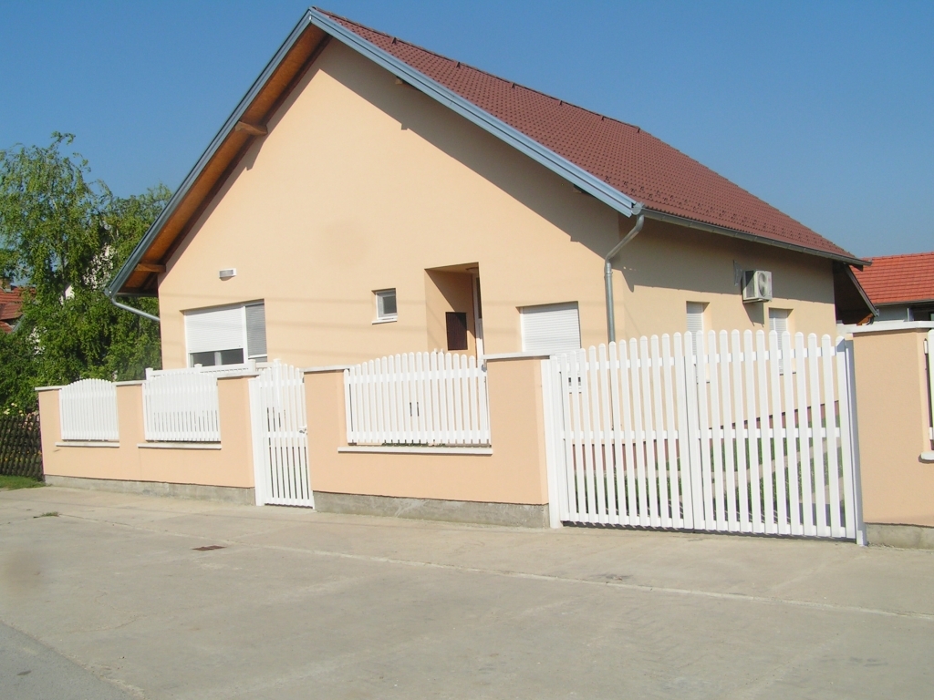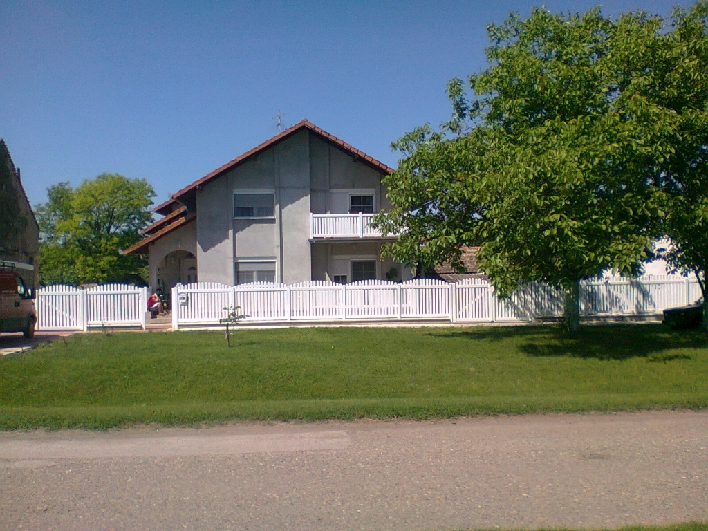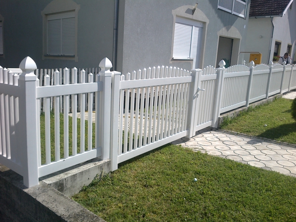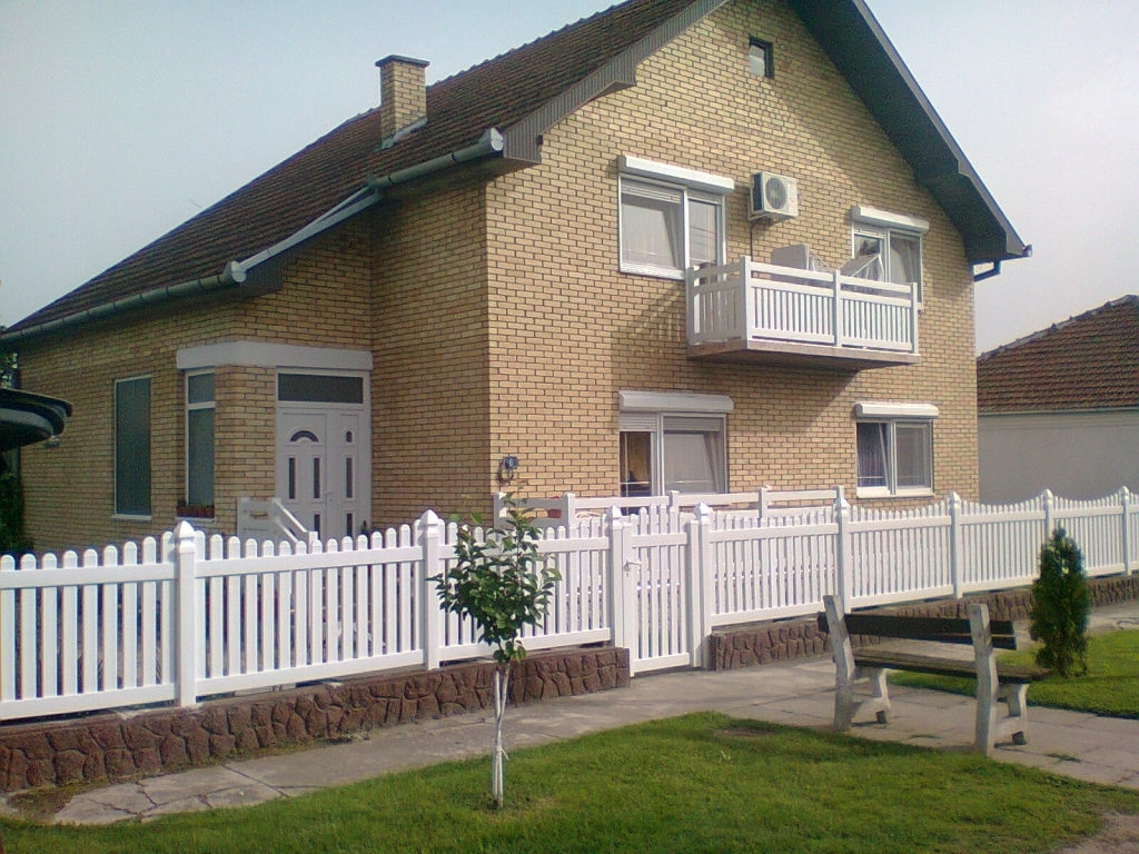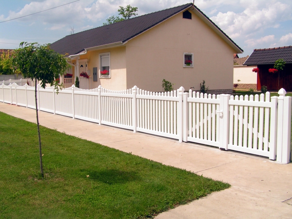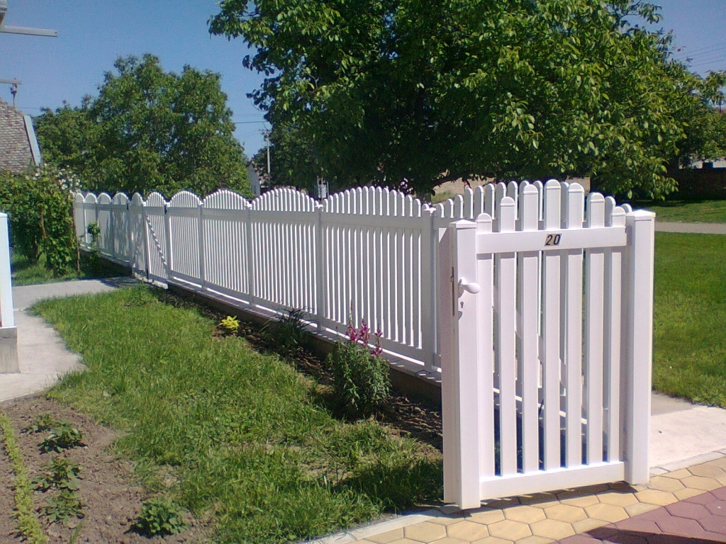 Ravna plastična ograda do ulice, sa malom i velikom kapijom.