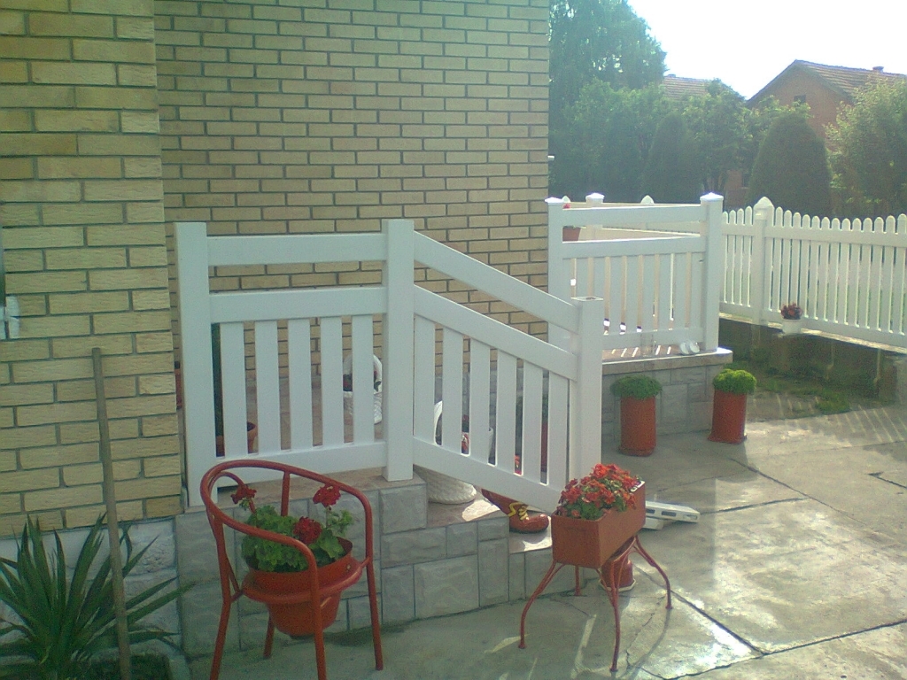 Dvorište ograđeno plastičnom ogradom model "Pacific" a na terasama i stepeništu je model "R2" u Zmajevu.